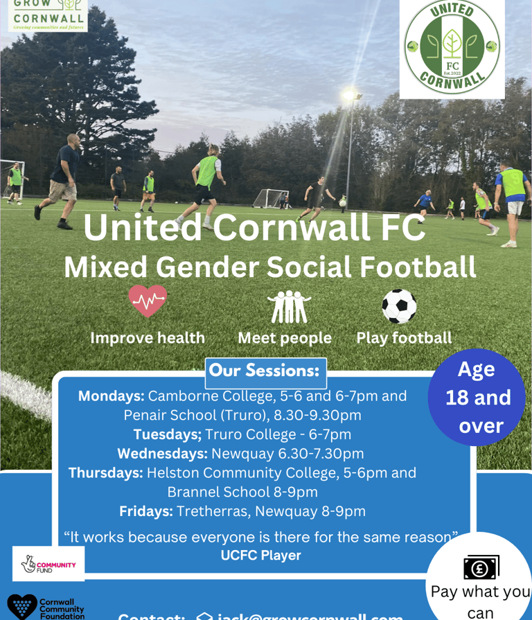 United Cornwall FC doesn't believe that finances should be a barrier to playing sport and a healthy lifestyle. That means as a group we will support those who are struggling and players should feel no shame in coming along when times are tough.
